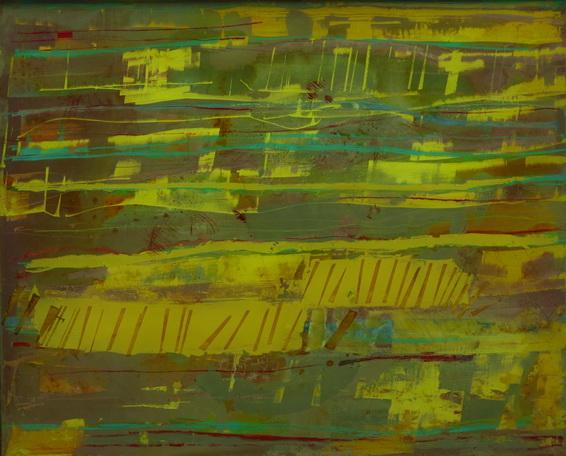 Titel:Kippendes GelbTechnik:Öl hinter GlasFormat:38 x 46 cmEntstehungsjahr:2012