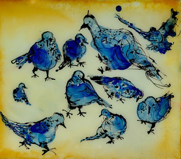 Titel:Blue BirdsTechnik:Öl HinterglasFormat:23 x 27,5Entstehungsjahr:2017