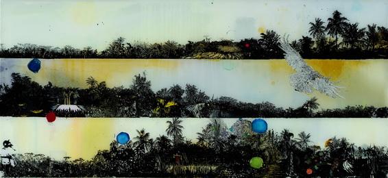 Titel:DdschungelTechnik:Mischtechnik HinterglasFormat:60 x 130Entstehungsjahr:2019