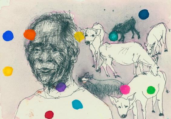 Titel:KuhhirteTechnik:Mischtechnik auf KartonFormat:10,5 x 14,5