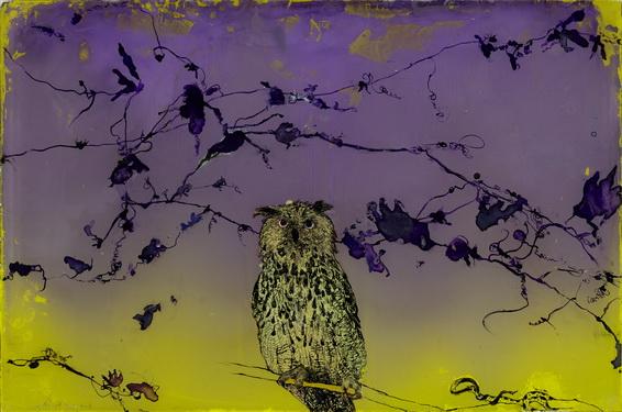 Titel:Bubo - BuboTechnik:Mischtechnik HinterglasFormat:47 x 70Entstehungsjahr:2020